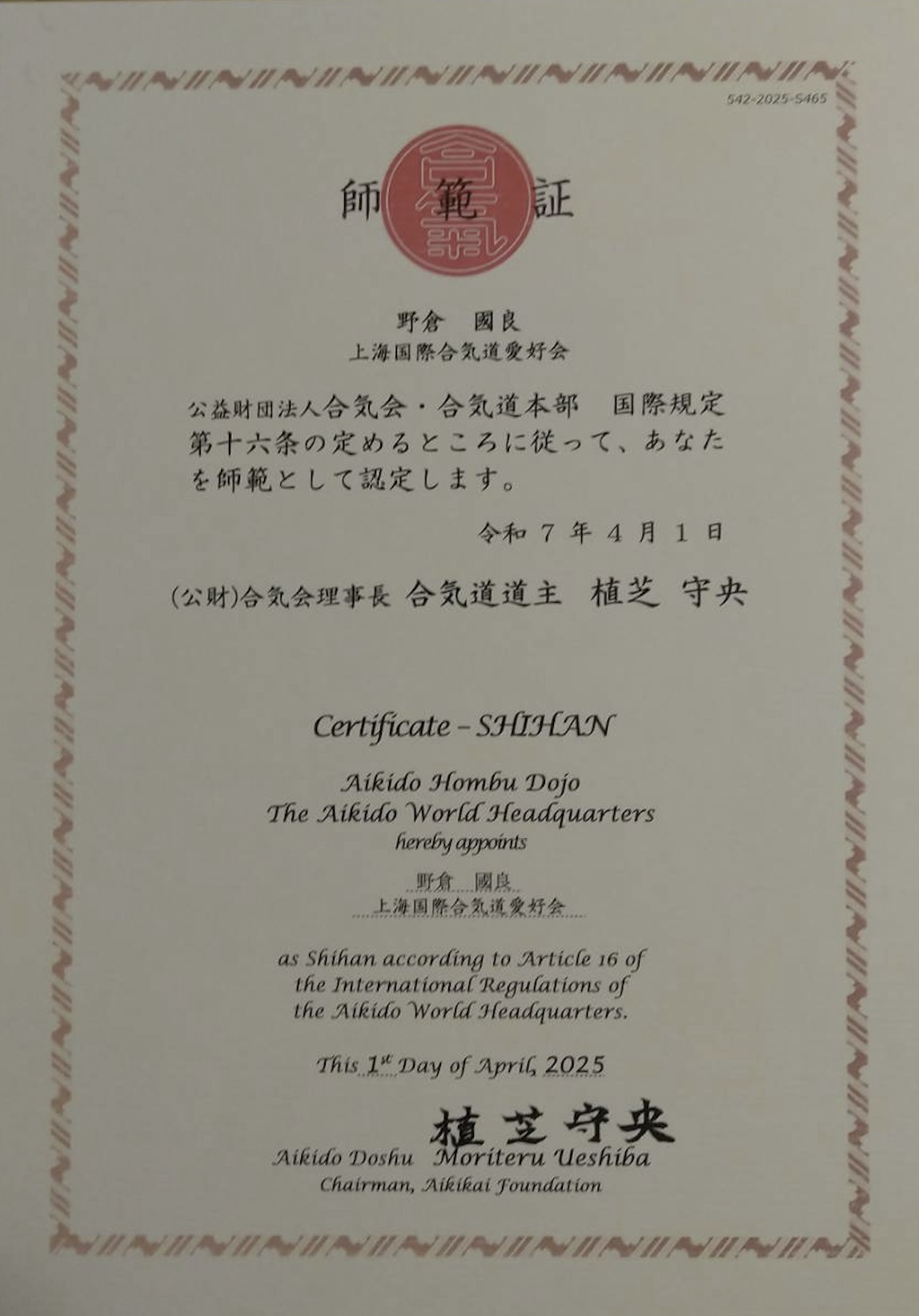 | 2025' | Appointed as Shihan by The Aikido World Headquarters.![]() |